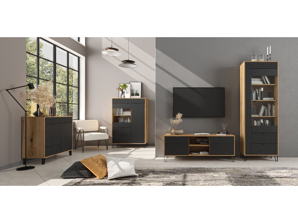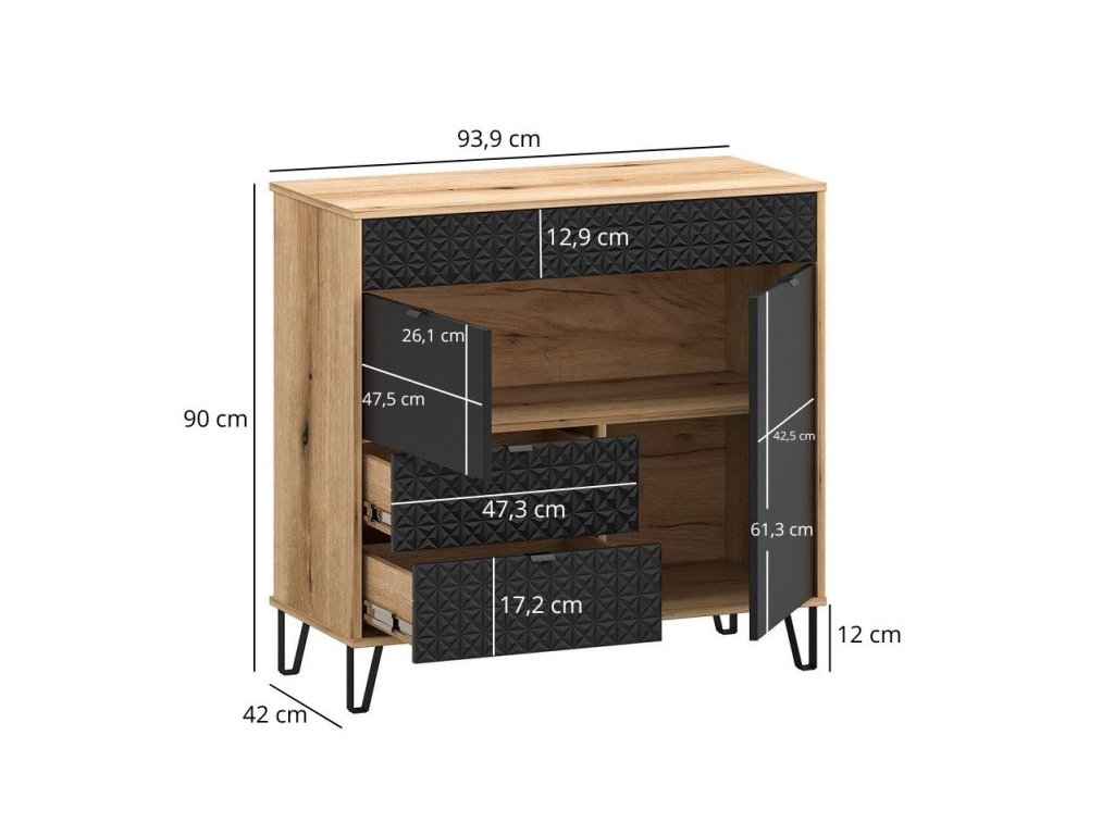 - komoda Beluno kombinace dekoru dub evok a černé barvy dodává komodě elegantní a nadčasový vzhled, který snadno sladite s dalším nábytkem