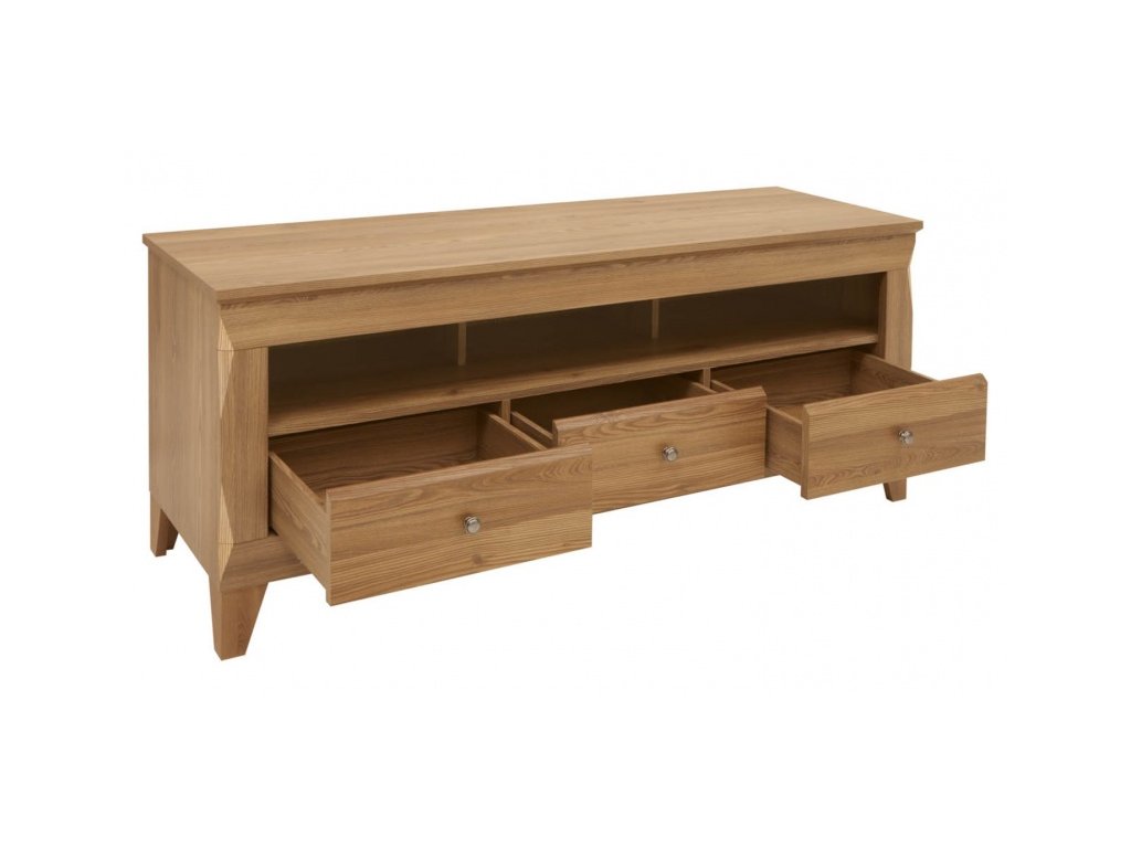 - 3 otevřené police pro elektroniku a 3 zásuvky s tichým dovíráním na pojezdech HETTICH s tlumeným dojezdem.