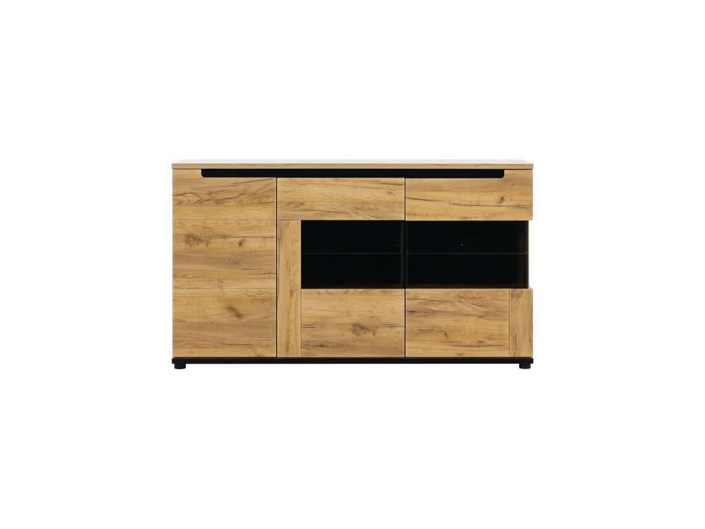 - komoda PR4 ze systému PRISCO - tří dvířková částečně prosklená, s policemi. V prosklené části jsou police skleněné a můžete je doplnit LED osvětlením