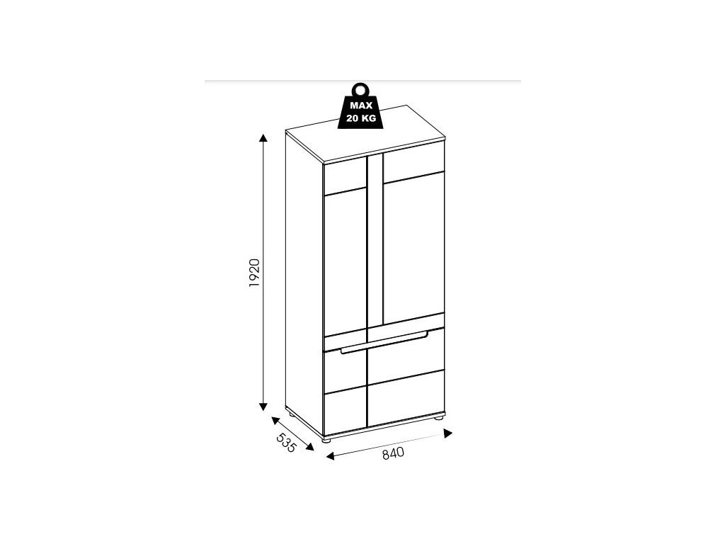 - šatní skříň PR7 ze systému PRISCO - dvou dvířková s policemi ve spodní části a šatní tyčí nahoře