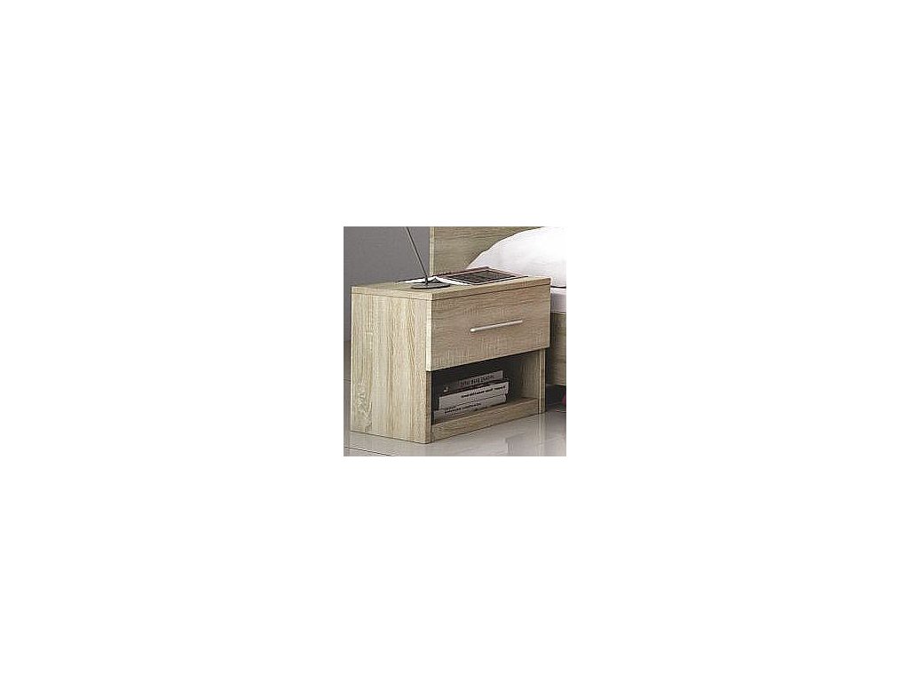 - jednoduchý a praktický noční stolek, který nabízí jednu uzavíratelnou zásuvku s kovovou úchytkou a jednou policí