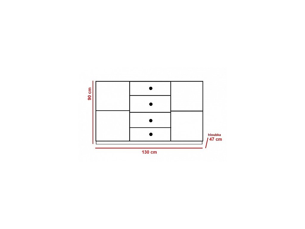 - komoda je vybavena čtyřmi prostornými zásuvkami, ideálními na drobnosti, a dvěma skříňkami s policemi, které vám poskytnou místo pro větší předměty