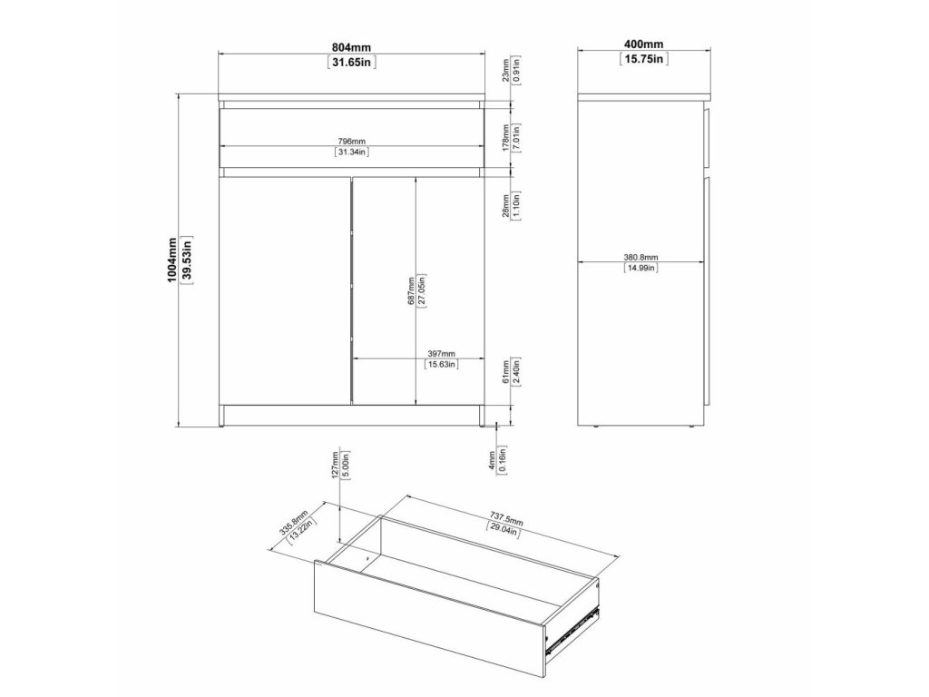 - 2 dvířka +1 zásuvka, 3 nastavitelné police