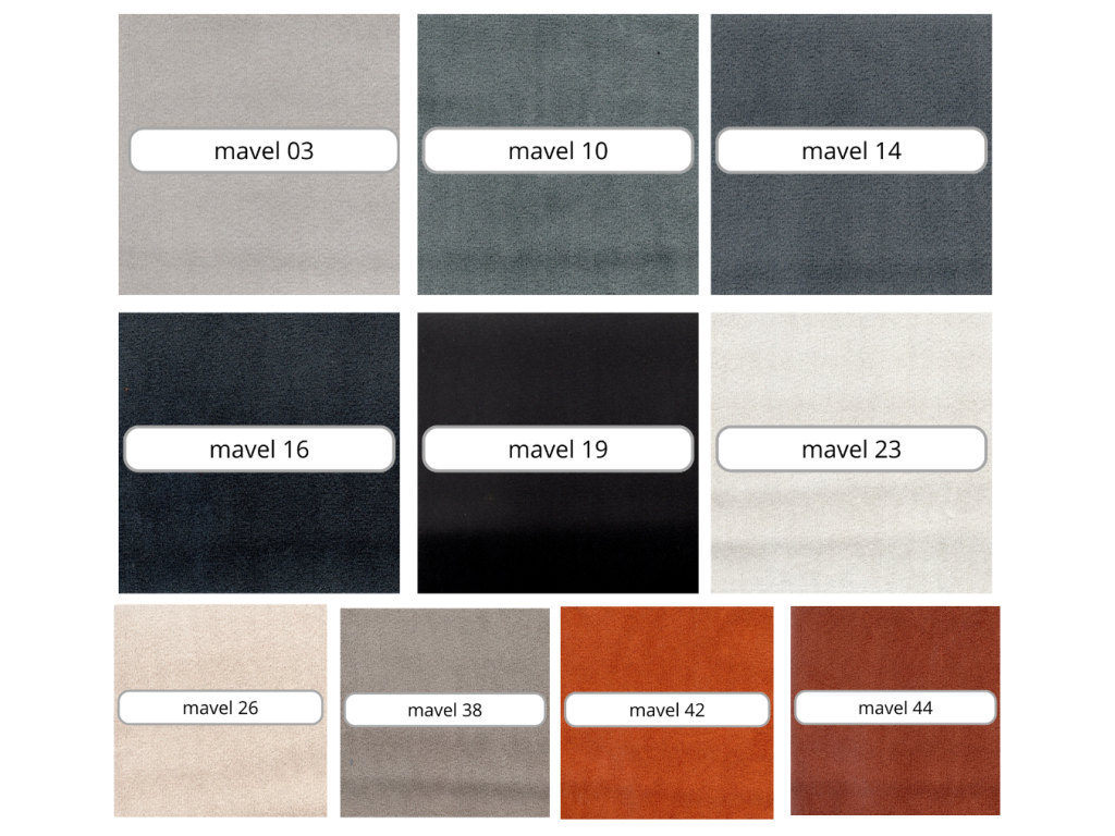Kolekce MAVEL je na dotek měkká, ale zároveň hustá látka, kterou lze charakterizovat jako matný samet.