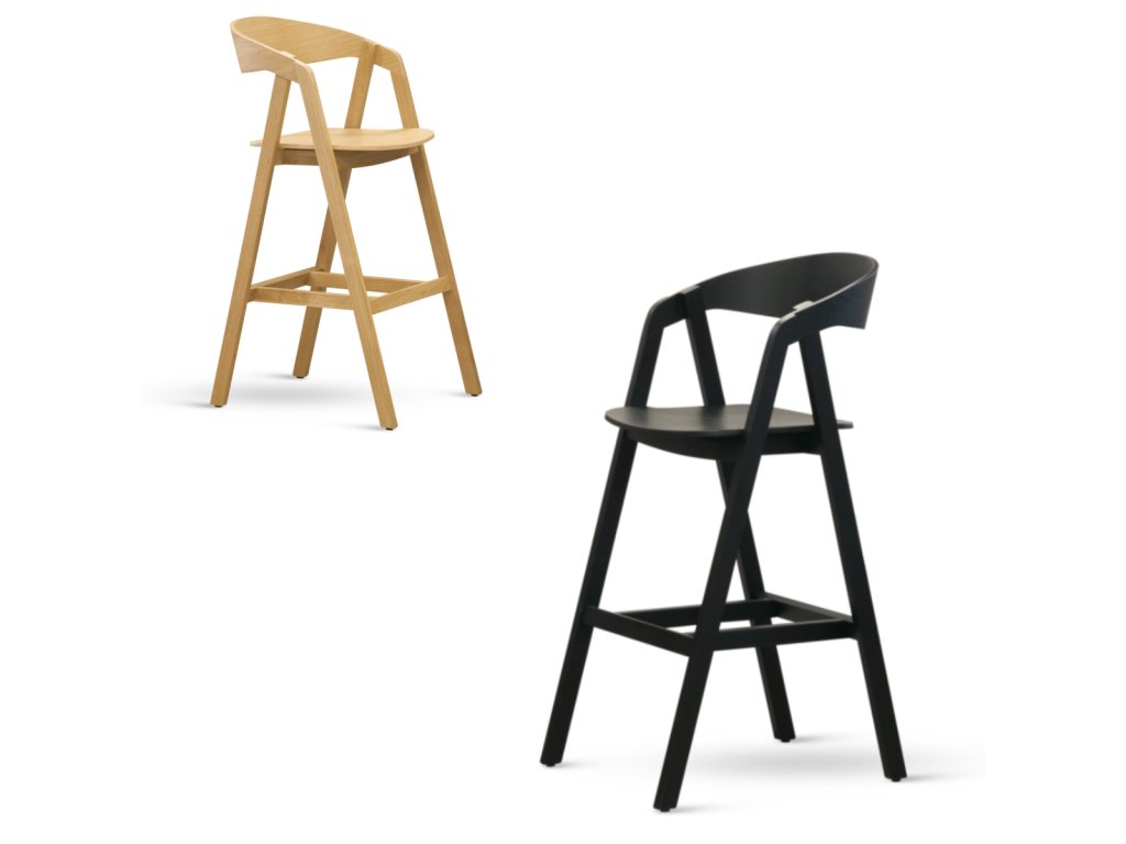 Barová židle k oblíbenému křesílku GURU, výška sedu 63cm. Nabízíme provedení černý lak (kostra buk masiv) a dub masiv, přírodní odstín. Sedák i opěrka jsou ohýbaná překližka.Doplňkové parametry