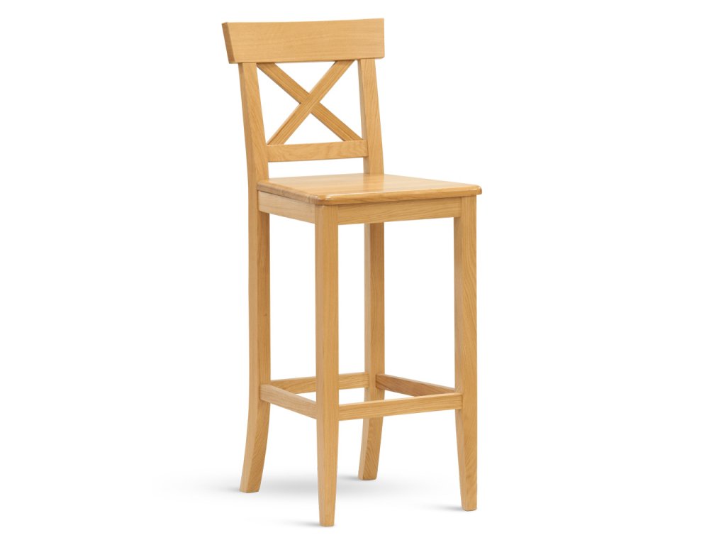 Barová židle s masivním sedákem a opěrkou.
